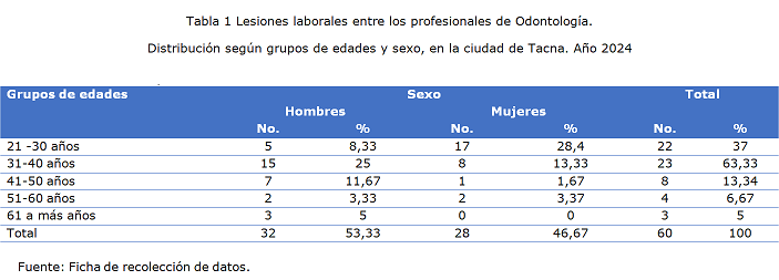 Lesiones laborales entre los profesionales de odontología en la ciudad de Tacna