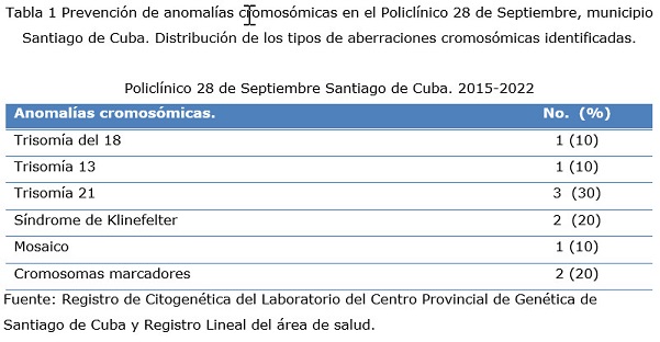 Prevención de anomalías cromosómicas en el Policlínico 28 de septiembre, municipio Santiago de Cuba
