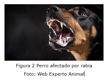 Rabia urbana: Transmitida por perros y gatos, los primeros constituyen el principal reservorio (99 % de los casos), eliminan el virus por medio de la saliva en un promedio de tres a diez días antes de que se manifieste la enfermedad. (Figura 2) (1,5,6)